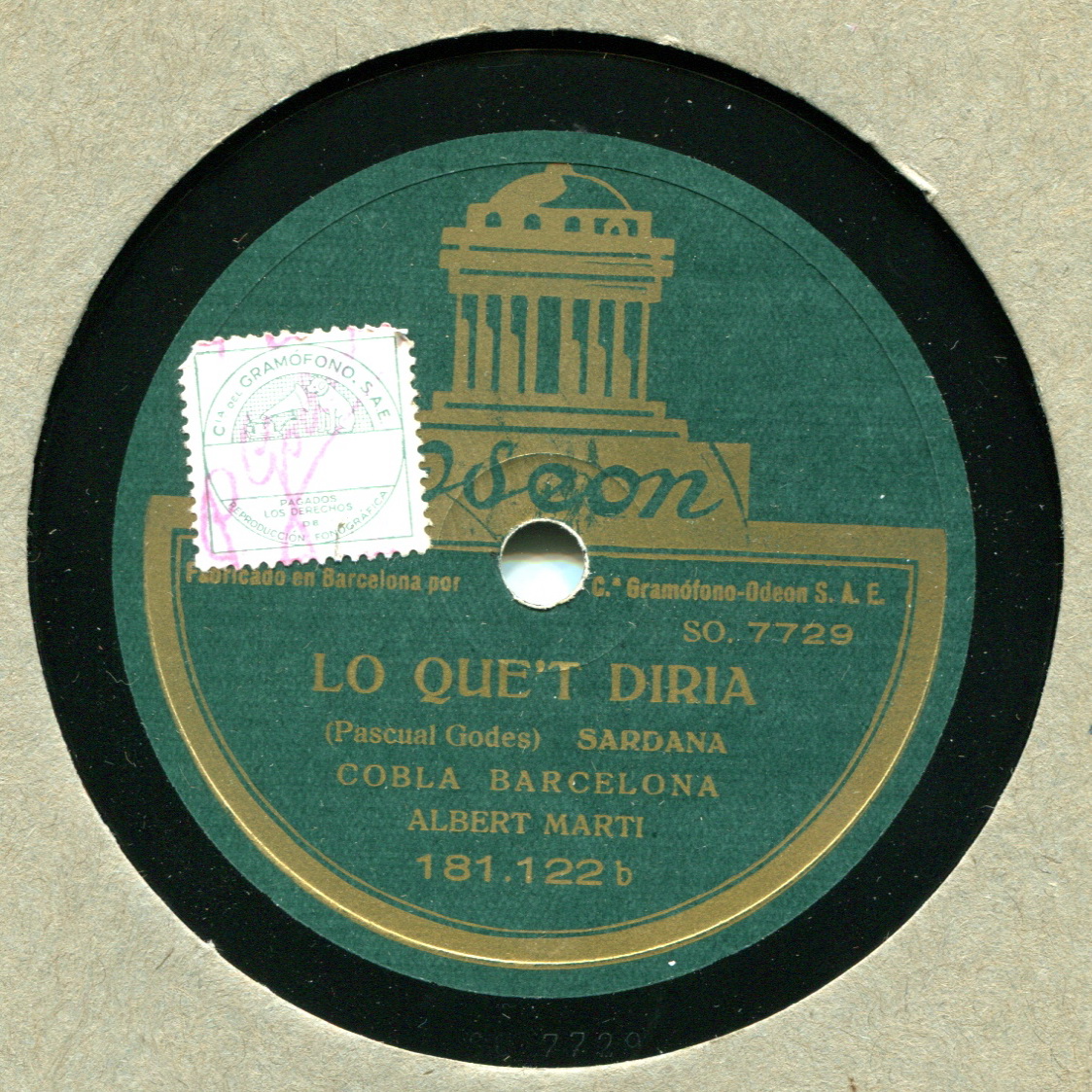 Cobla Barcelona Albert Marti: Odeon 181122 SO 7728