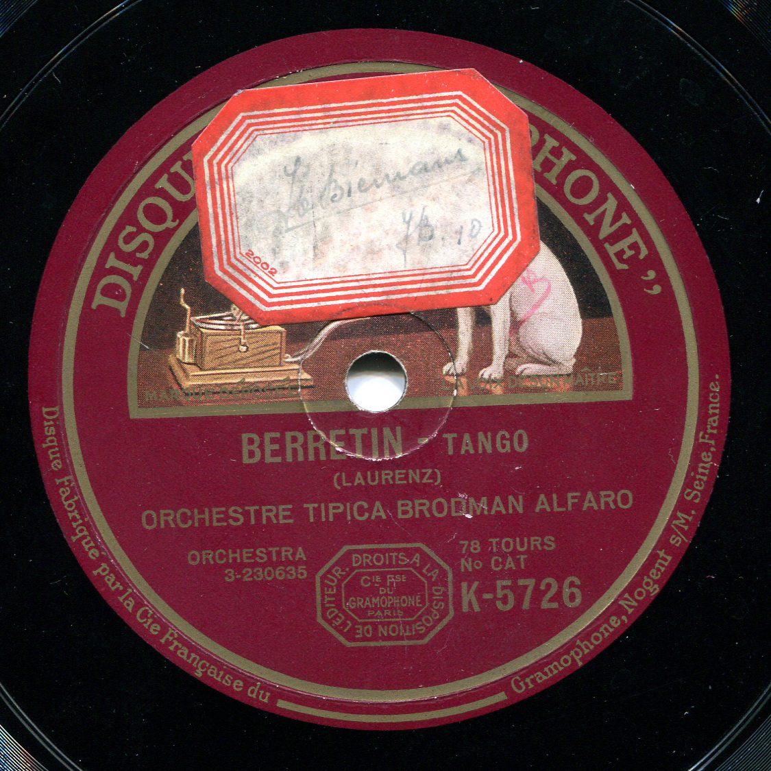 Brodman-alfaro: Disque Garmophone K-5726 BN416 3-230636-r